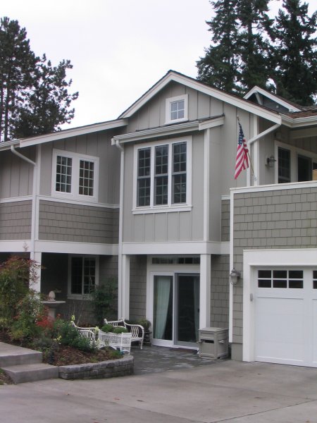 The most common mistake I see in choosing exterior house color is that the color is too light. The sun will wash out colors outside, so choosing a light subtle color will end up looking like white. When choosing colors, keep in mind that they usually need to be more gray or brown than you think. For example, a gray with a tint of green in it will read more ‘green than you think when painted on an entire house. If you choose a color and can say ‘now that’s green’, you’ve likely chosen too ‘green’ of a green.