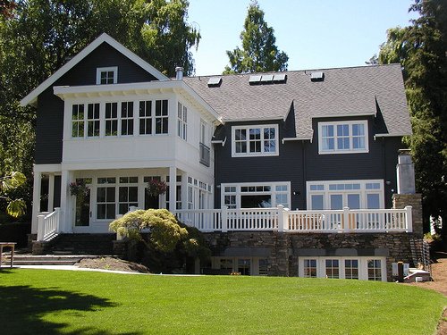If your house used to have wood shake shingles and you are replacing it with a composition shingle, most manufacturer’s make a dark brown color (often called ‘Driftwood,’ or something similar) that is similar to shake colors. If you are installing a metal roof, consider colors other than the traditional green, which works well on buildings with log siding but not much else. Again, choose a color that will allow some flexibility in your house paint color choices.